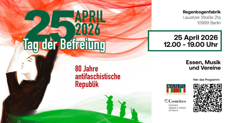 Il Comites Berlino supporta le celebrazioni per la Festa della Liberazione organizzata da ANPI Berlino, di seguito tutte le informazioni per poter partecipare.