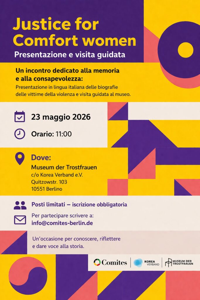 Il 23 maggio 2026 il Comites di Berlino organizza “Justice for Comfort Women”.